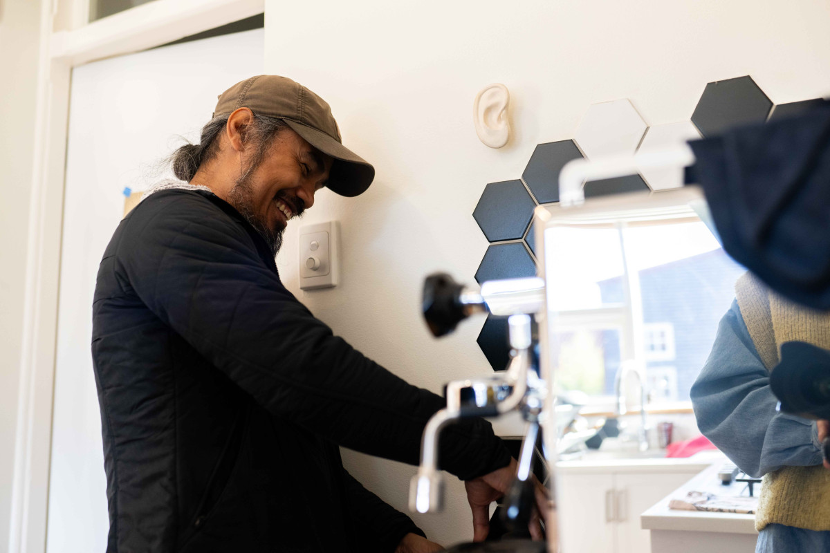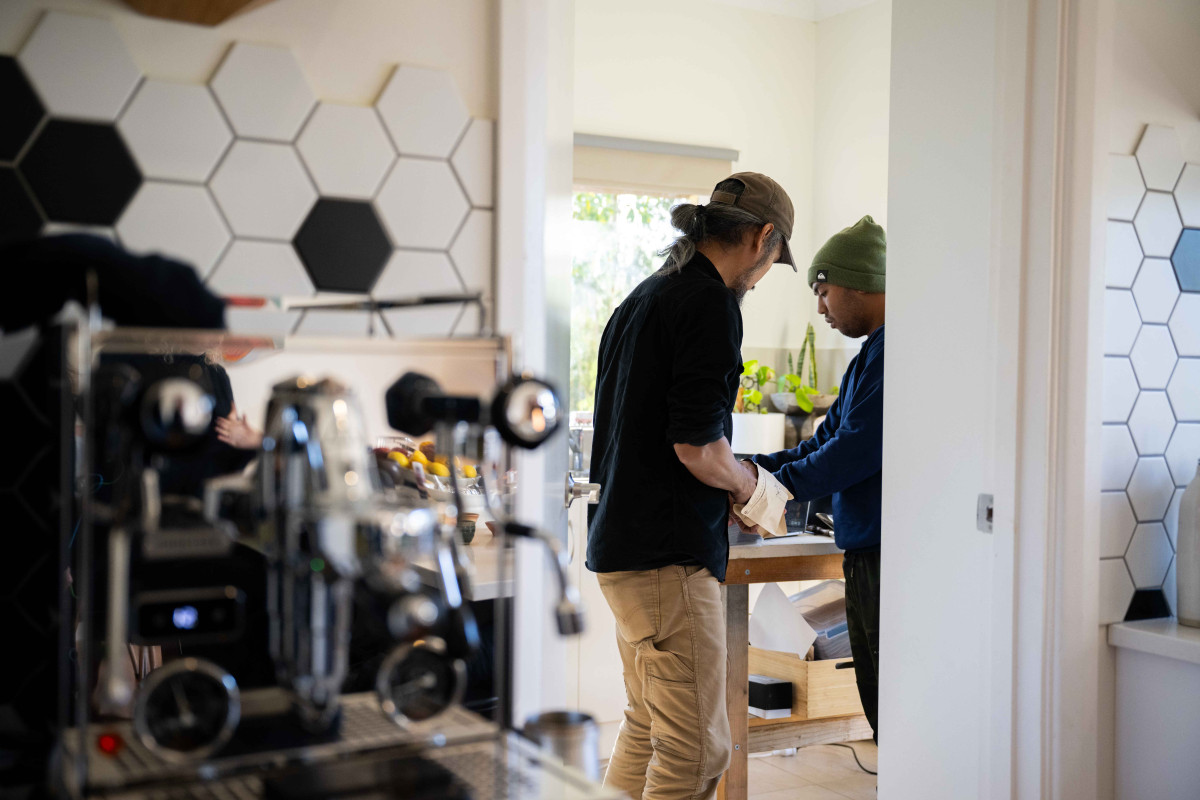 Pour 40g of water and stir. The duration of the first pour should be about 30 seconds, but this depends on the freshness of the beans. I do 30 seconds if it is 3-4 days after roasting. Any earlier and I bloom it longer).