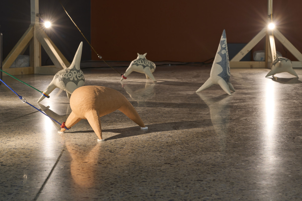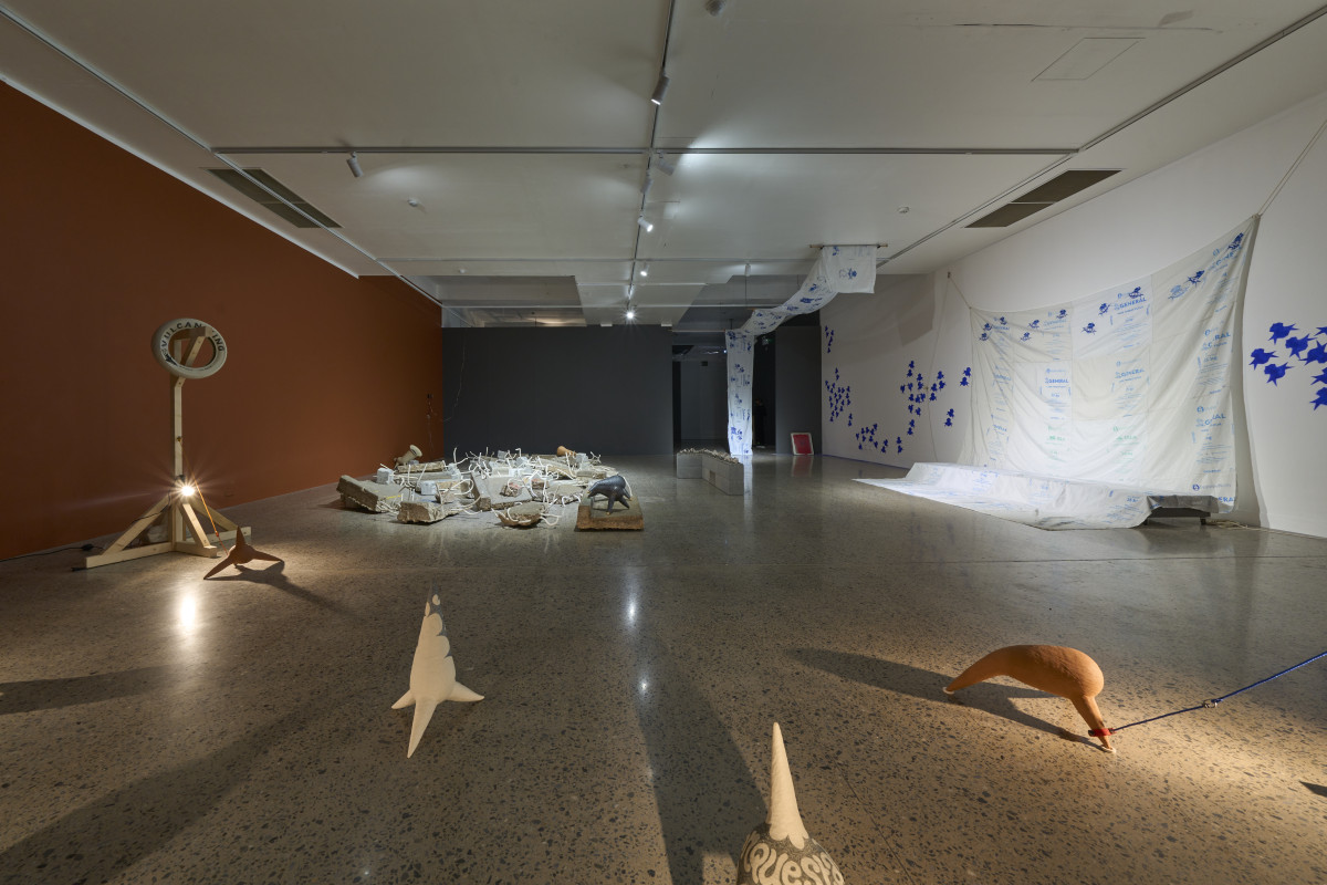 Audiences will enter a hostile environment of spikes, weeds, walls, shards, and noise, in an installation that combines ceramics, steel, timber, textiles, sound, and more. This exhibition can be seen and experienced from multiple angles, through an installation layered with colliding ideas. Spiky ceramics, for example, in some cases reference the encroaching spread of introduced weeds, and in turn colonising and oppressive forces; while elsewhere in the installation they are a nod to anarchic resistance to dominating forces.