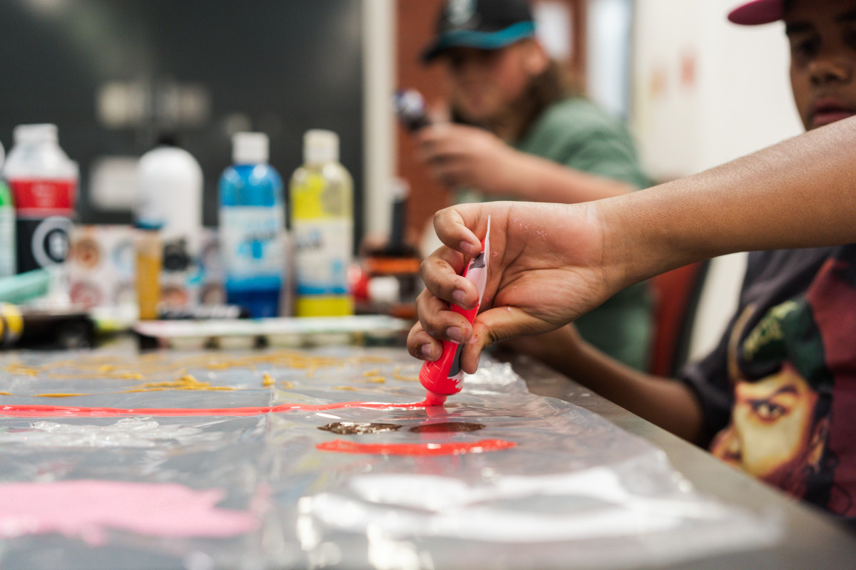 ACE Future Studios is a free initiative offering fully supported, city-based studios to a cohort of young First Nations South Australian artists. Across a one-week intensive residency and year-long mentoring, the program fosters creativity, professional insight, and practical skills with guidance from mentor artists and ACE staff. This unique opportunity provides participants with first-hand experience of professional studio practice and the networks to support their future creative pathways.