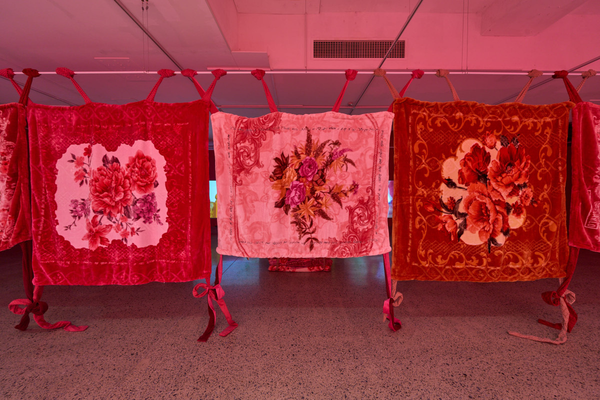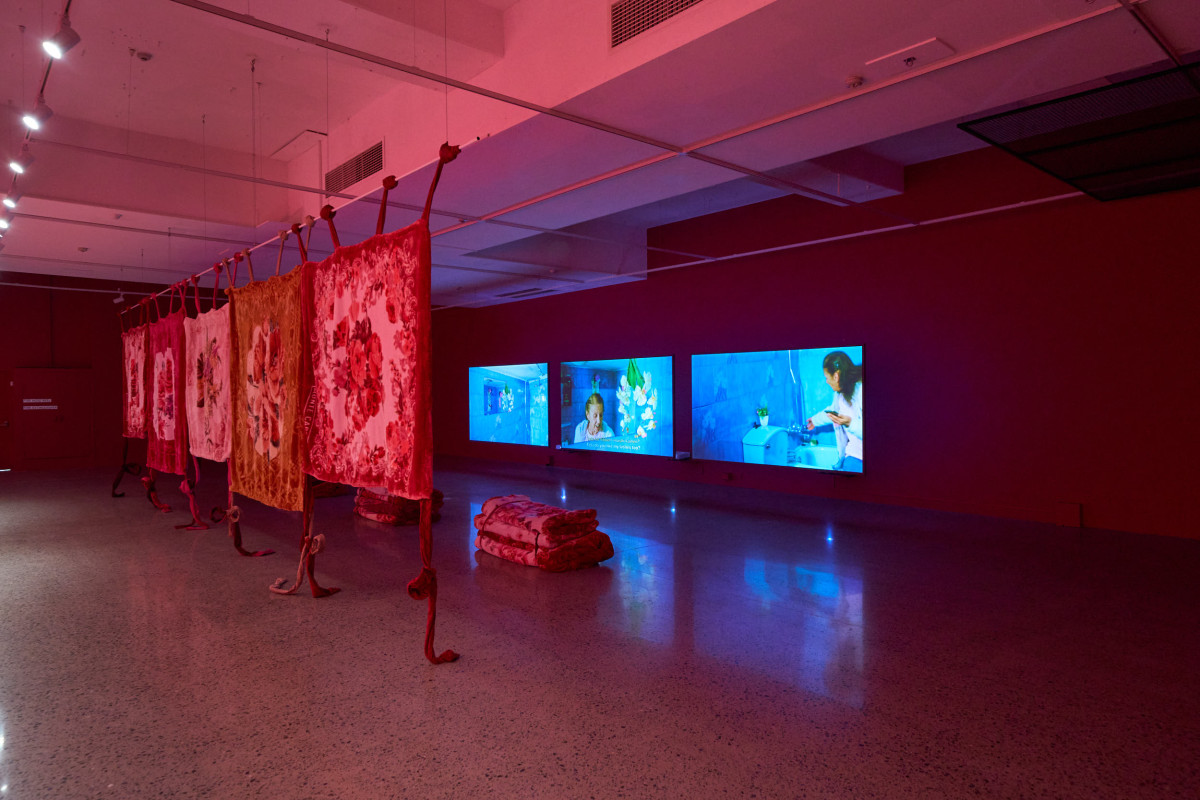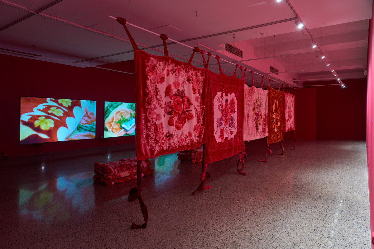 Justine Youssef’s Somewhat Eternal is a multi-sensory installation, encompassing video, textiles, text, scent.