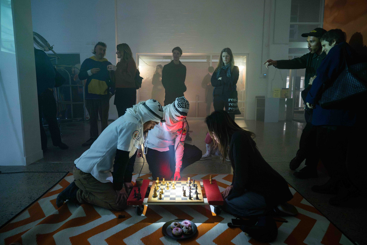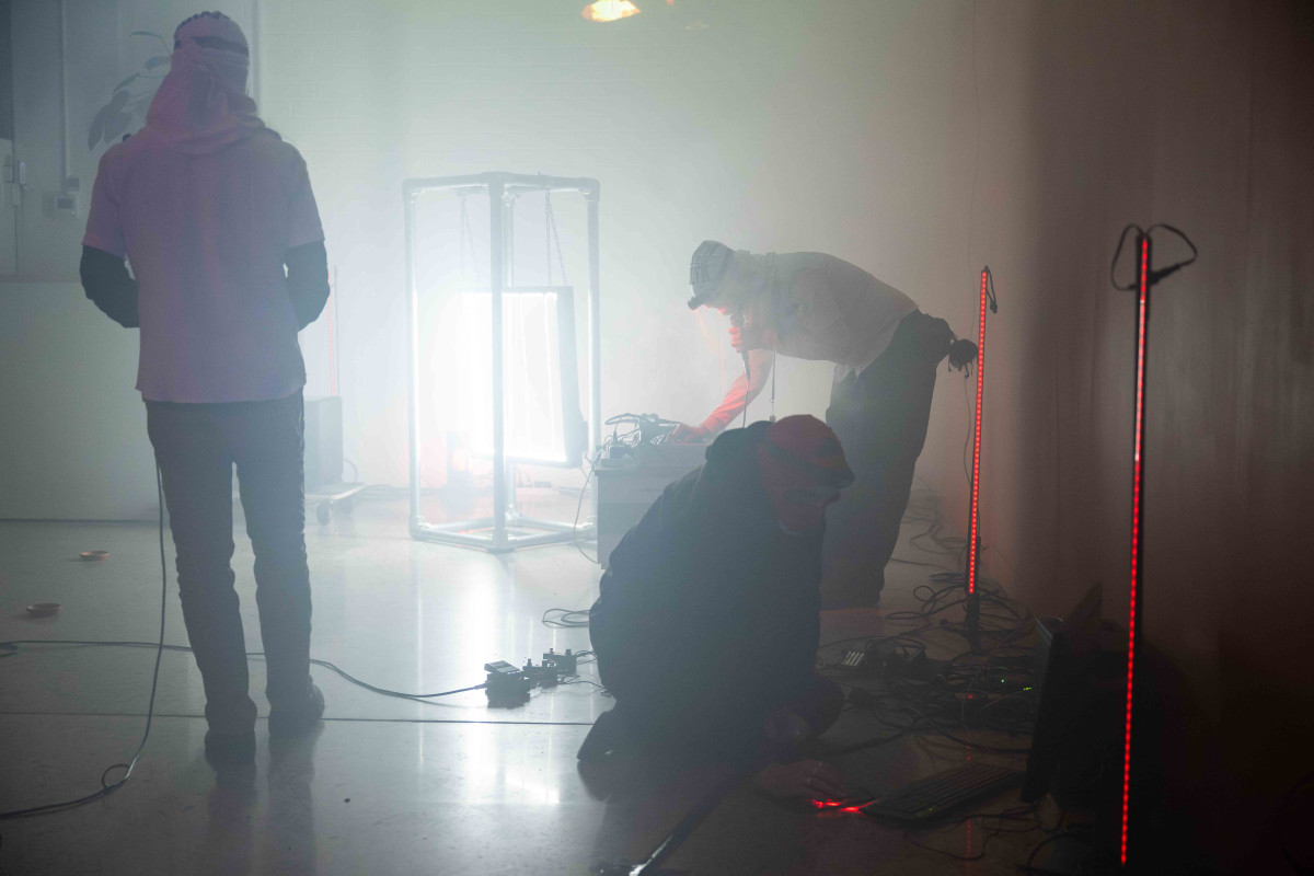 Mark Valenzuela, Miles Dunne and Alycia Bennett present a large-scale installation combining electronic composition, a lighting state, performance and experimental ceramics.